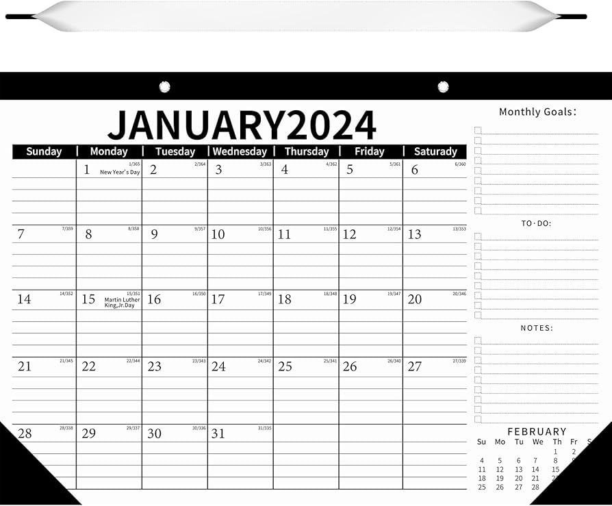 2024 Desk Calendar 12″x17″ Large Monthly Pages with to do list